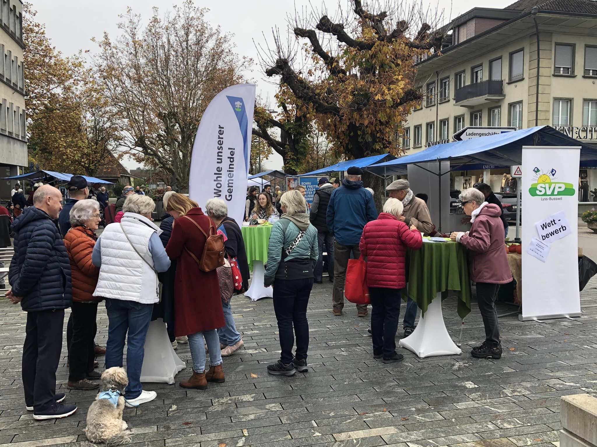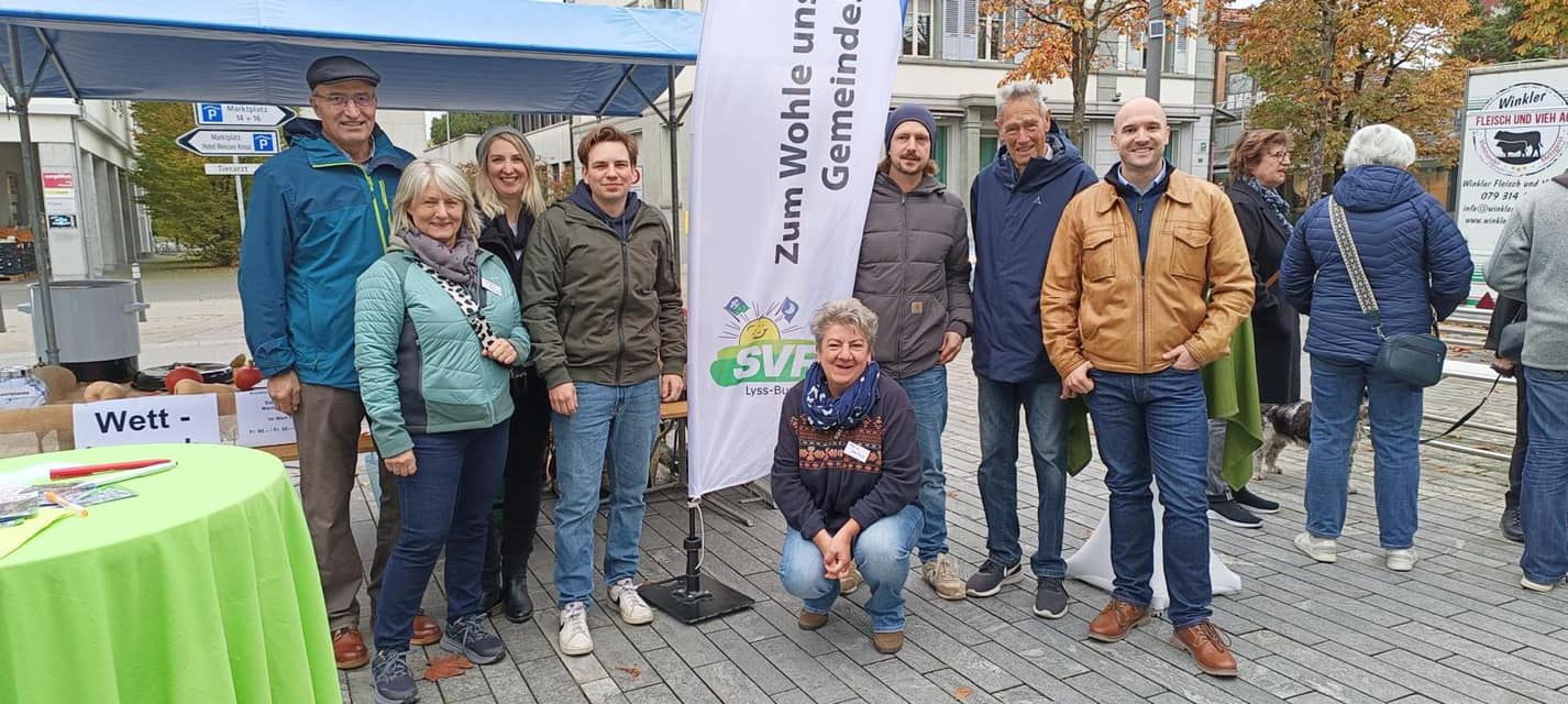 Die SVP Lyss-Busswil war am 26. Oktober 2024 am Themenanlass auf dem Marktplatz vertreten.
